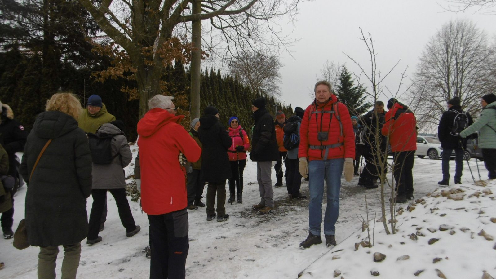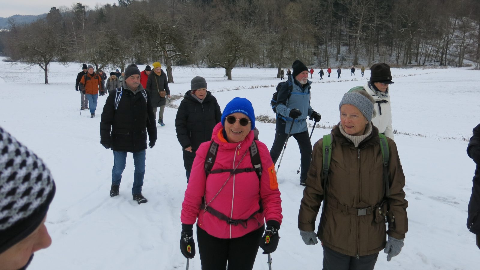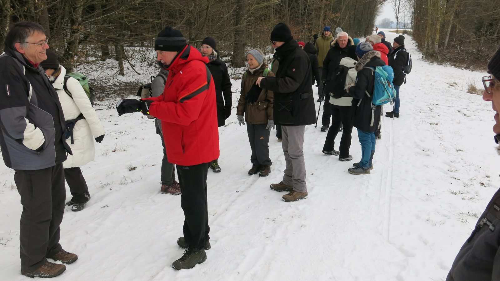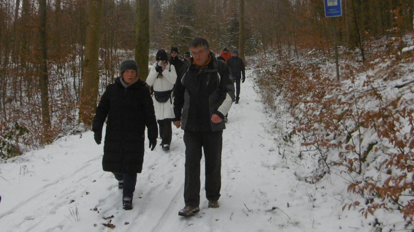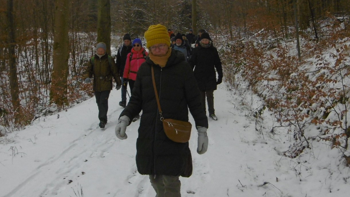 Wandergruppe über Steinbach a.W. und Bautzenhof durch den traumhaft verschneiten Wald hinab