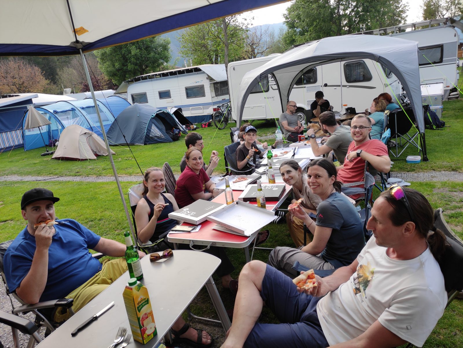 Der Tagesausklang war im Anschluss auf dem Campingplatz mit Pizza und kühlen Getränken.