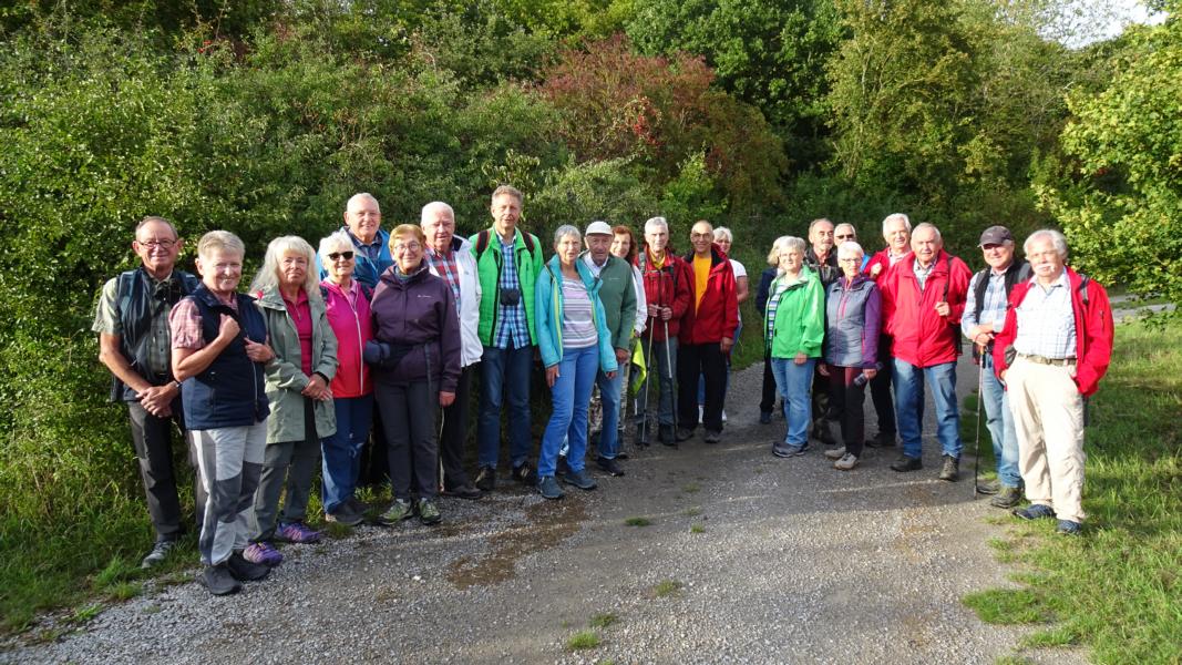 Die DAV OG Crailsheim und Mitglieder aus Dinkelsbühl wanderten auf dem Ameisenweg bei Schnelldorf Der Weg führte die wanderlustige Truppe rund um den Bergmann, vorbei an einer über 500 Jahre alten Eiche – mit herrlichen Ausblicken ins Wörnitz- und Ampfrachtal. Zum geselligen Ausklang ging es in den Landgasthof Klotz.